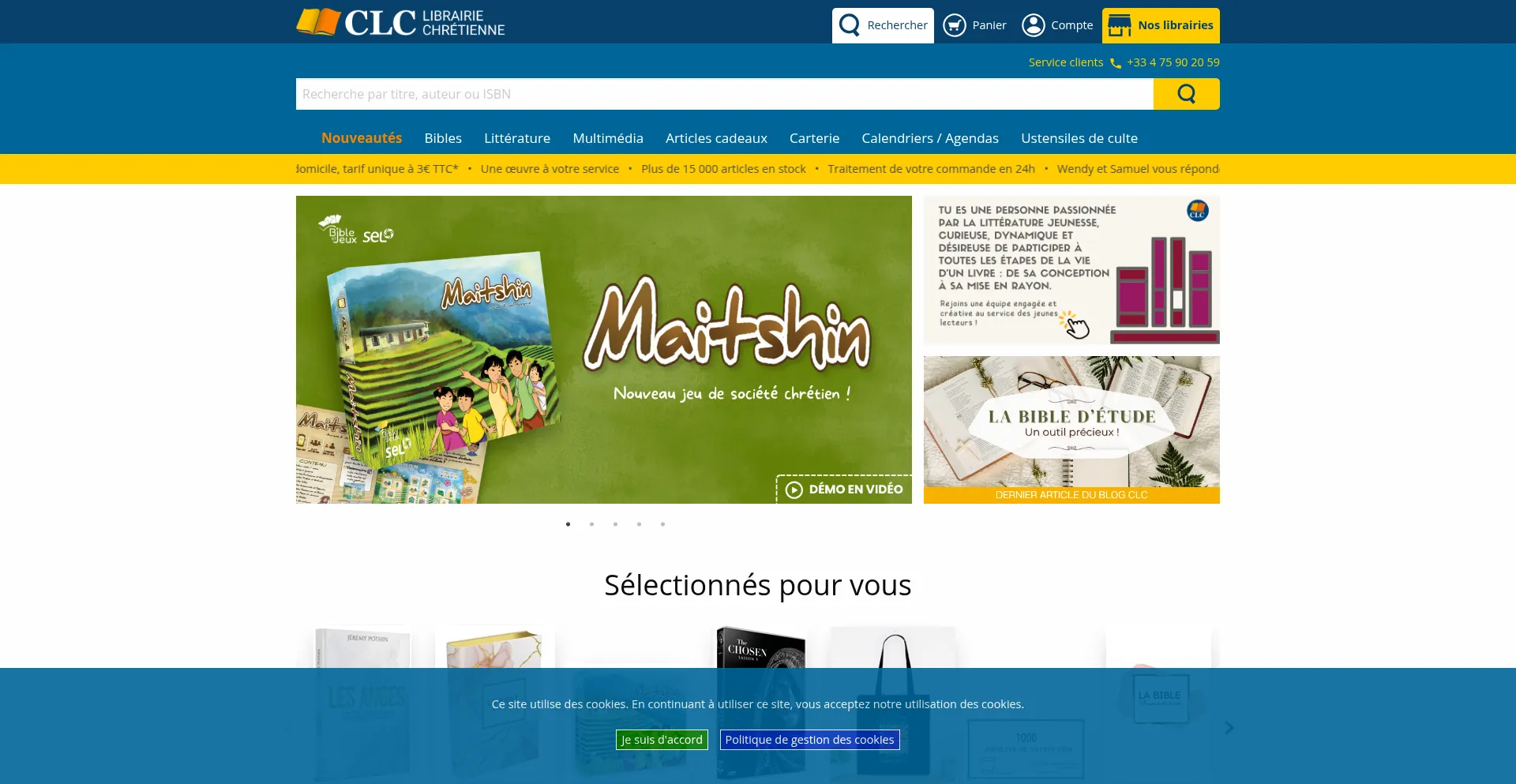 Vente en ligne de Bibles, livres d'études, littérature divers, littérature pour enfants et ados, CD, DVD, Vidéo, jeux, papeterie, calendriers, ... Découvrez aussi qui est l...