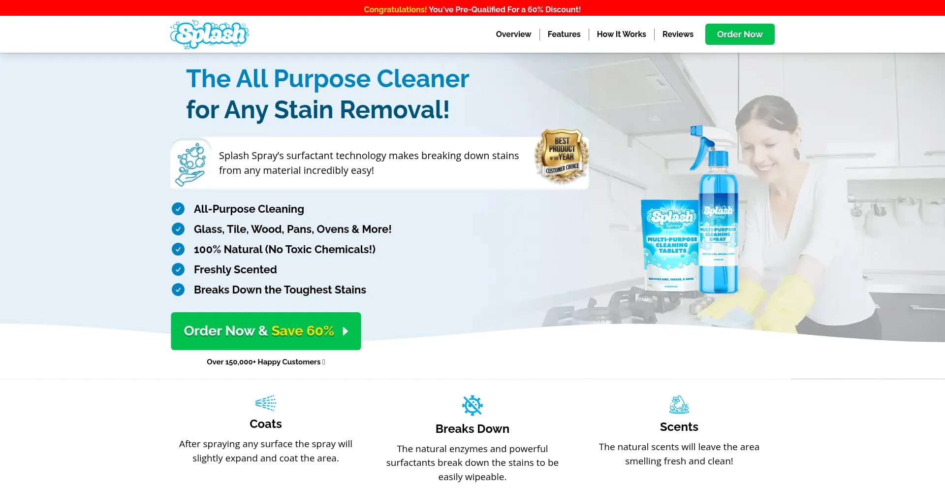 Say goodbye to stubborn stains and bad odors with Splash Spray Multipurpose Cleaner.