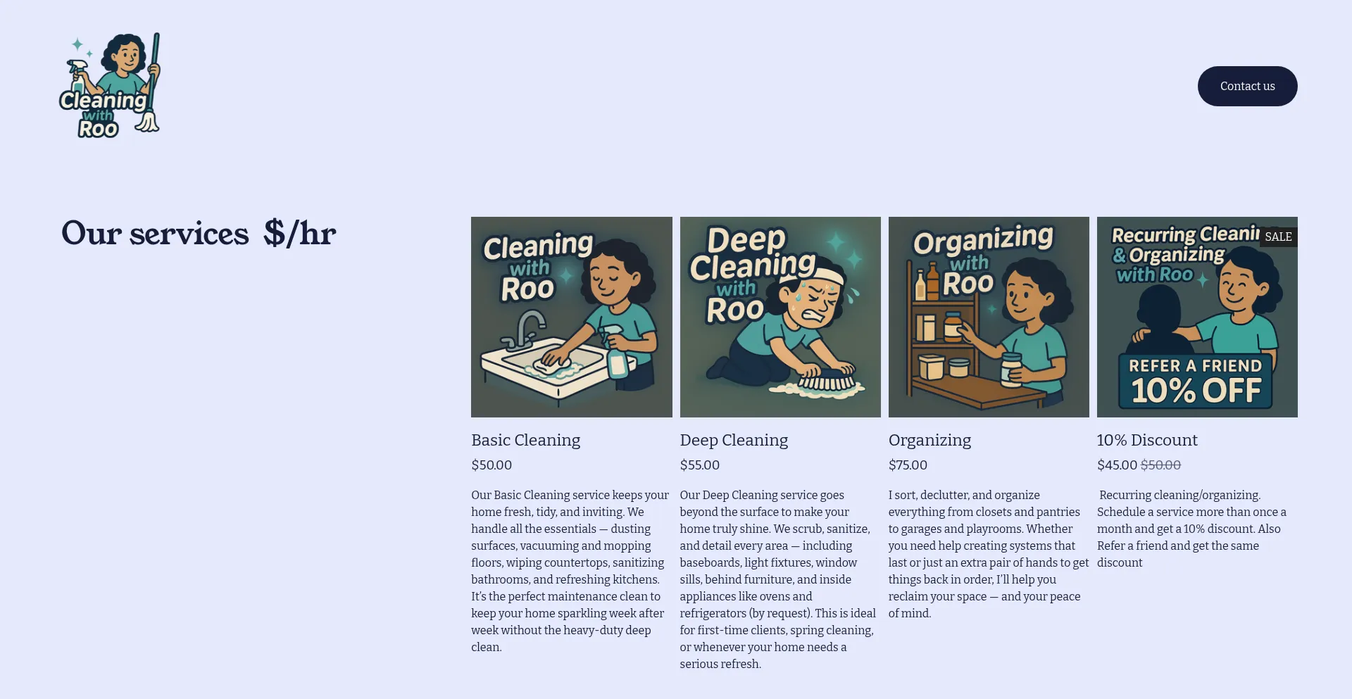 Analysis indicates that cleaningwithroo.com operates as an e-commerce platform facilitating online transactions for goods or services. The website implements shopping cart functionality, payment processing systems, and product catalog features typical of commercial retail operations.