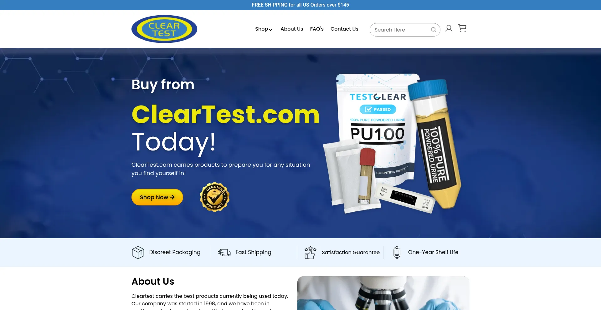 ClearTest.com Education & Products such as synthetic urine, cleansers, and shampoo. But today, only at Cleartest.com