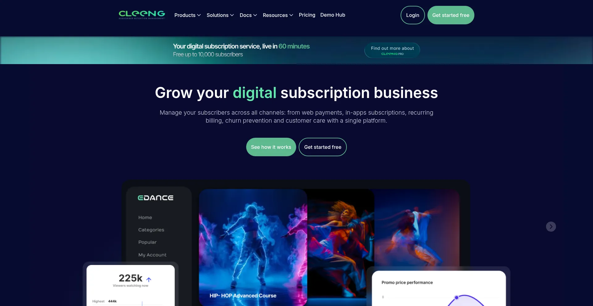 Simplify digital subscription management and billing with Cleeng. Enhance retention, optimize engagement, and scale seamlessly across web and mobile platforms.
