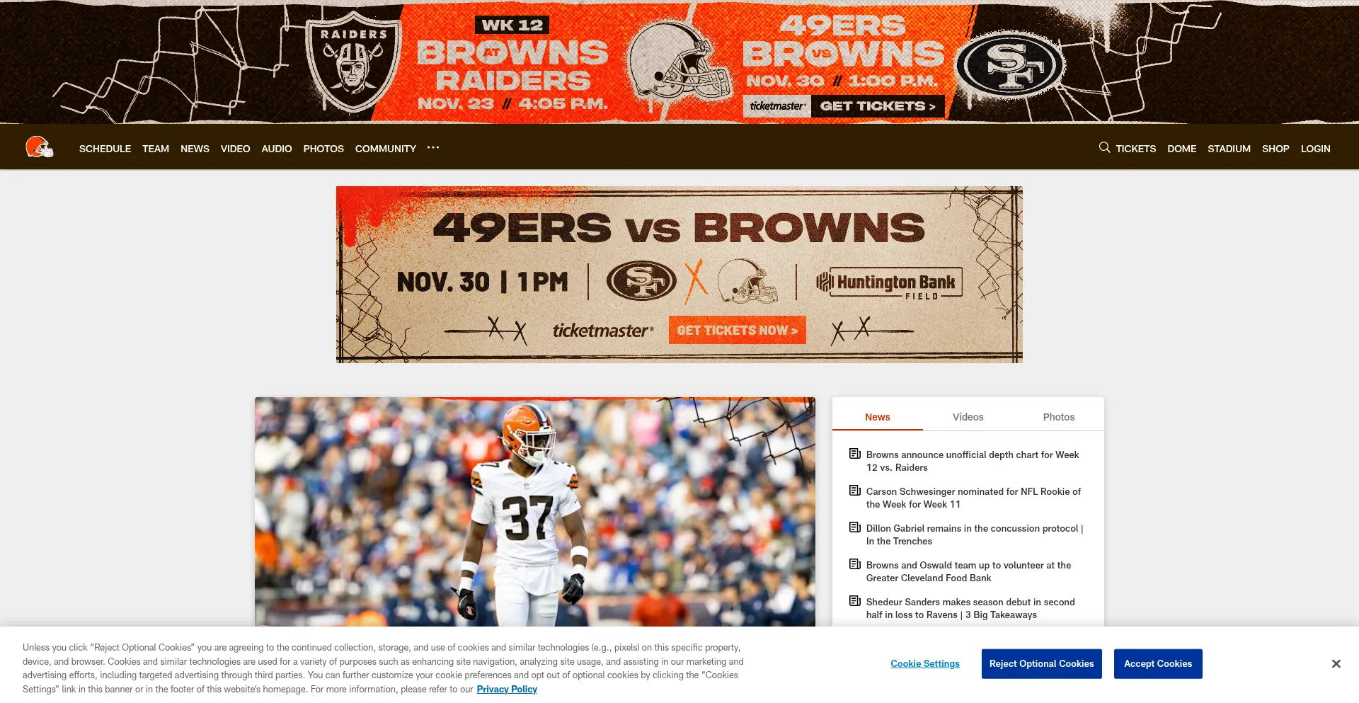The website implements cookie consent mechanisms in compliance with privacy regulations such as GDPR or CCPA. This demonstrates that clevelandbrowns.com adheres to data protection standards and provides users with control over personal data collection practices.