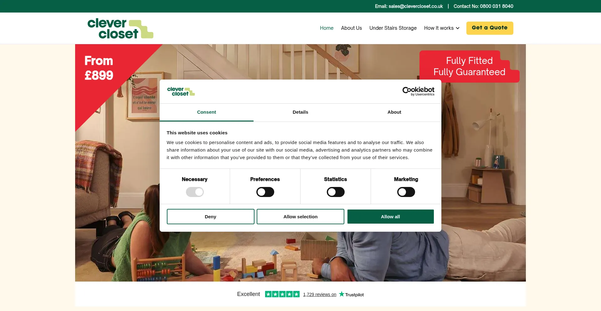 The website implements cookie consent mechanisms in compliance with privacy regulations such as GDPR or CCPA. This demonstrates that clevercloset.co.uk adheres to data protection standards and provides users with control over personal data collection practices.