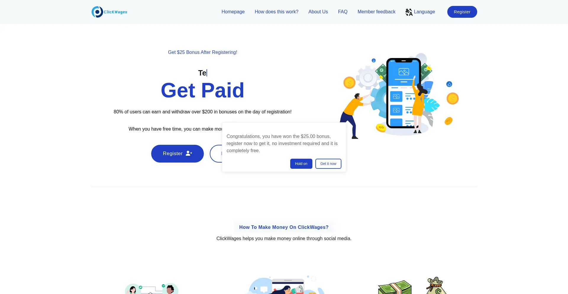 Reliable Payment Method, Financial Service, Pay to Click Job, Registration Form, Quick Payment, Web Application, Google Tag Manager, Cloudflare Browser Insights, Young Domain
