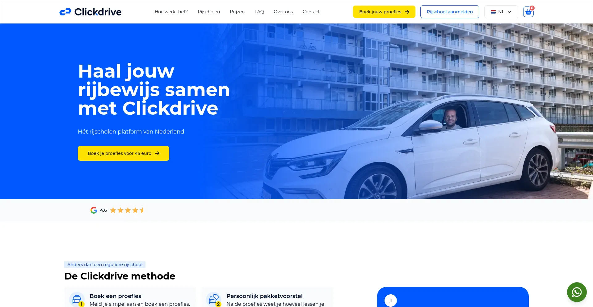 Haal snel en efficiënt je rijbewijs bij Clickdrive, hét rijschool platform in Nederland. Professionele instructeurs, flexibele lessen en hoge slagingspercentages. Start nu!
