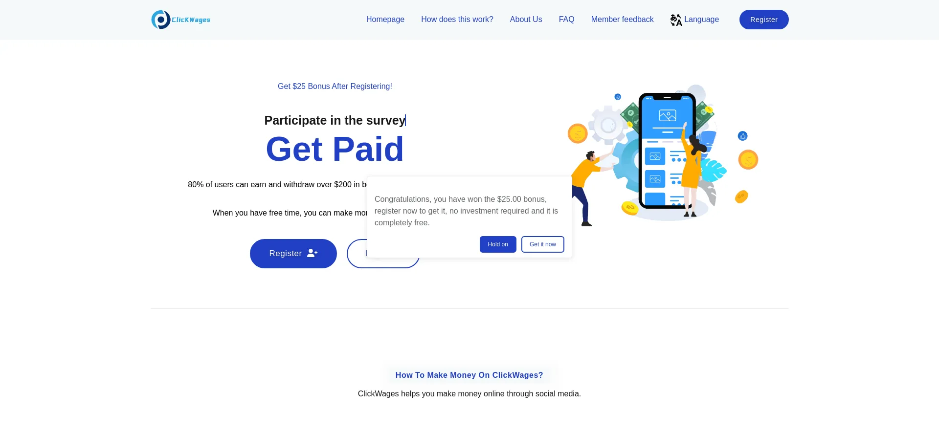 Clickeowwages.buzz Reviews | Scam, Legit or Safe Check | Gridinsoft