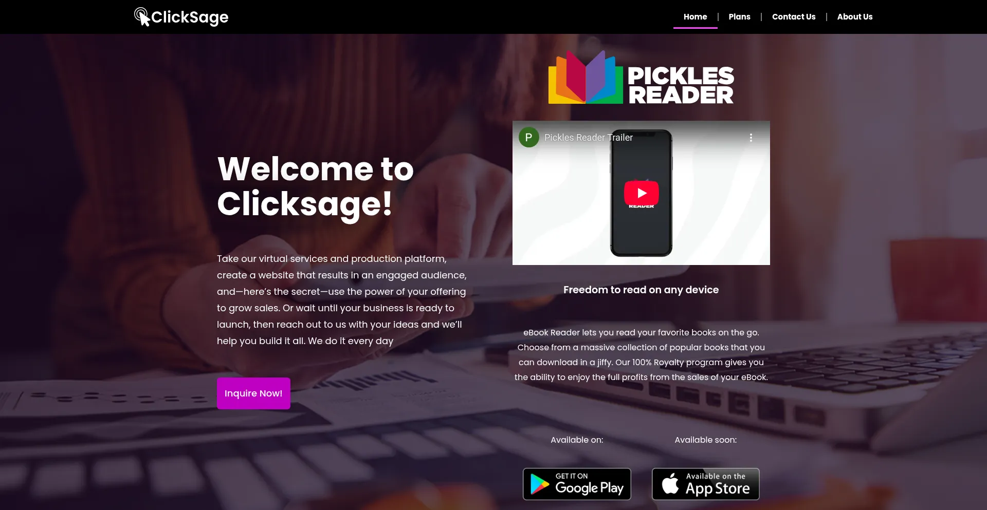 The clicksage.co website offers a mobile application for Android devices, indicating expanded platform presence beyond web-based services.