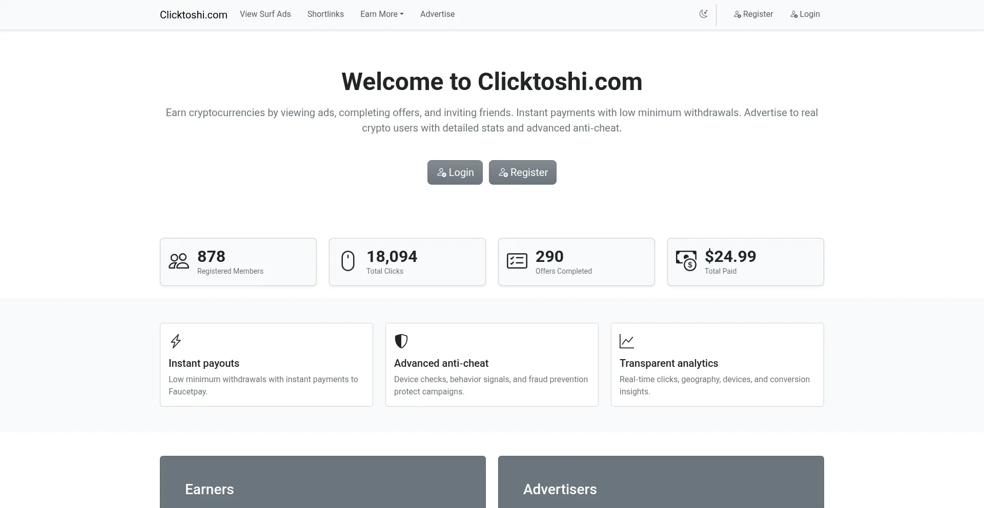 Earn free crypto or advertise your project on Clicktoshi.com - a trusted platform for ads, offers, and with instant payments.