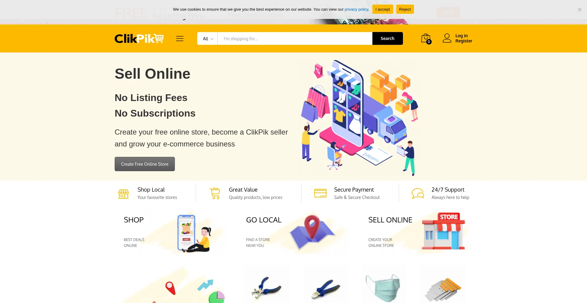 Sell products with ClikPik. Create your free online store and start selling locally or worldwide. No listing fees and no subscriptions, grow your e-commerce business.