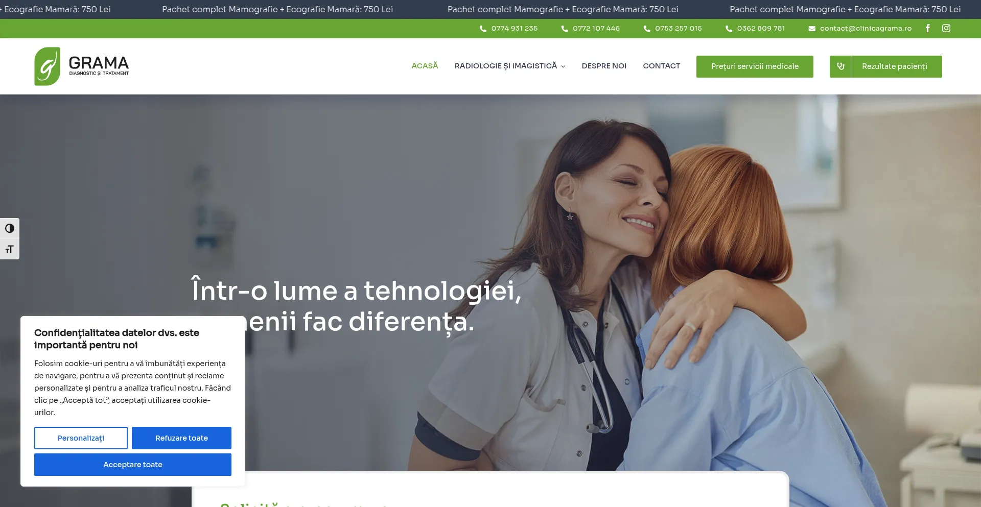 The website implements cookie consent mechanisms in compliance with privacy regulations such as GDPR or CCPA. This demonstrates that clinicagrama.ro adheres to data protection standards and provides users with control over personal data collection practices.