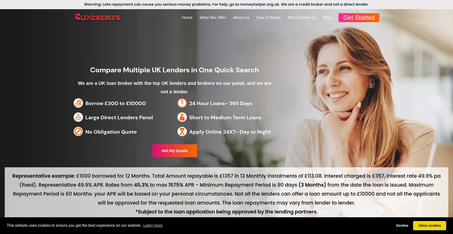 The website implements cookie consent mechanisms in compliance with privacy regulations such as GDPR or CCPA. This demonstrates that clixcredits.co.uk adheres to data protection standards and provides users with control over personal data collection practices.