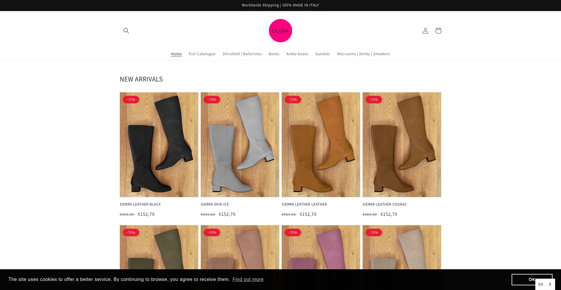 Our analyzer determines that website cliziashoes.it is using Shopify CMS. Shopify is a popular e-commerce platform, powering around 4.4% of websites globally.