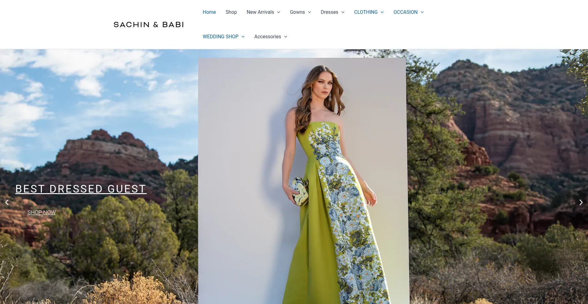 Explore elegant designer gowns, wedding guest dresses, and contemporary evening wear by Sachin & Babi. Enjoy free shipping over $500 and effortless returns.