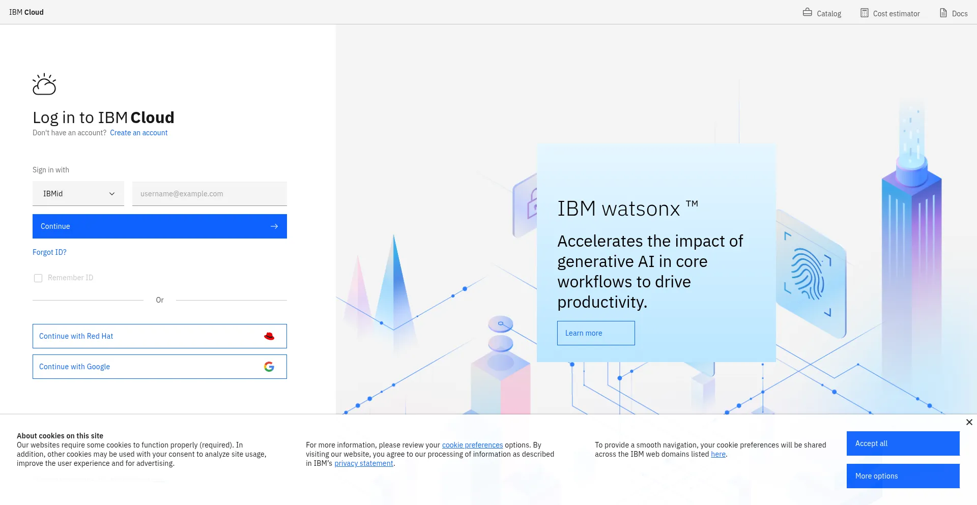 The cloud.ibm.com website implements data collection forms that may request personal information including names, email addresses, phone numbers, or other sensitive details. Users should verify the legitimacy of it and review privacy policies before submitting personal data.