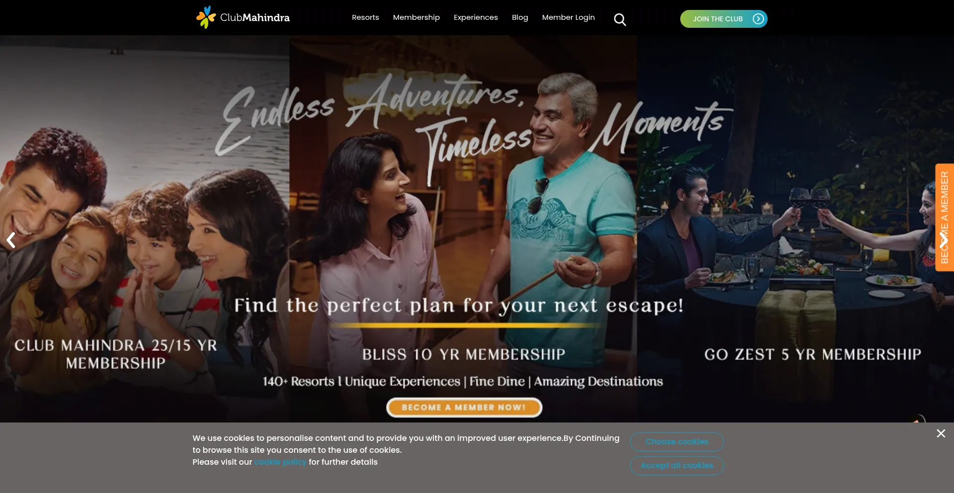 The website implements cookie consent mechanisms in compliance with privacy regulations such as GDPR or CCPA. This demonstrates that clubmahindra.com adheres to data protection standards and provides users with control over personal data collection practices.