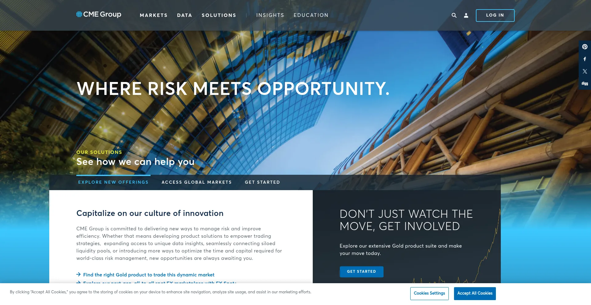 The cmegroup.com website uses Google Tag Manager to add and update tracking tags on its website.