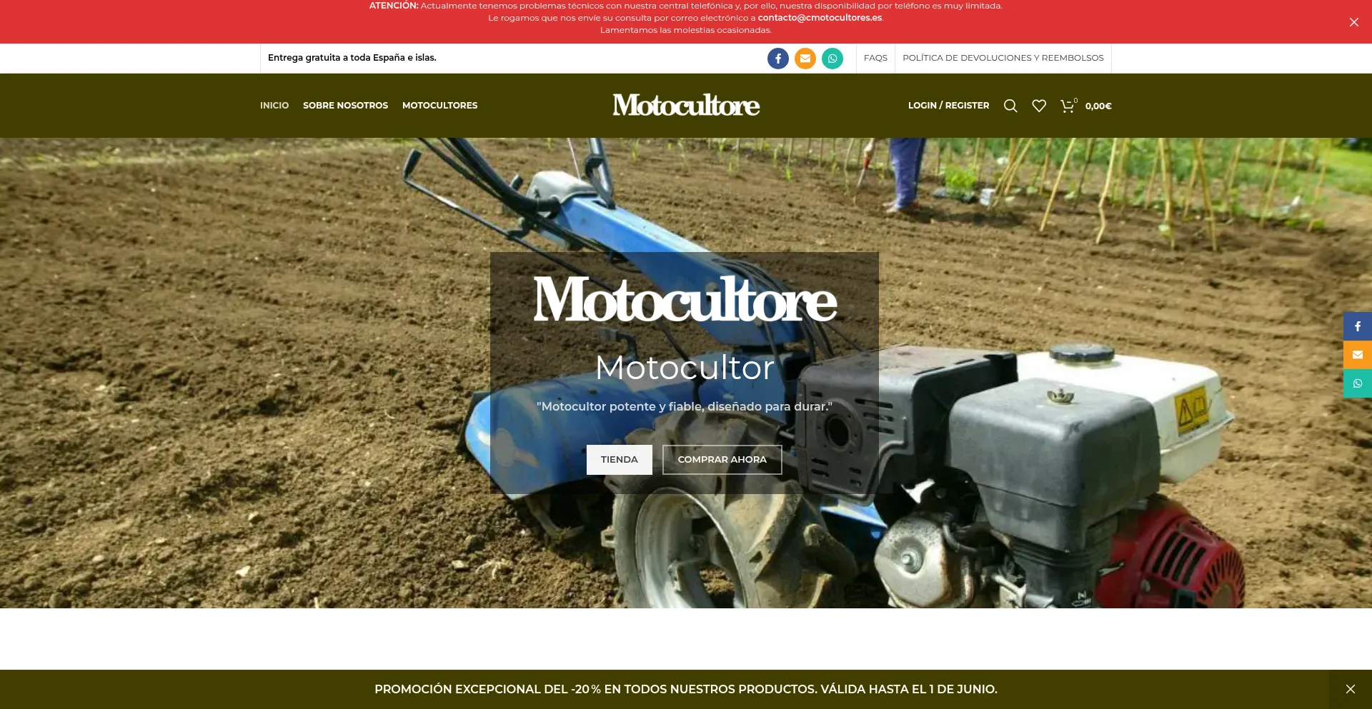 Analysis indicates that cmotocultores.es operates as an e-commerce platform facilitating online transactions for goods or services. The website implements shopping cart functionality, payment processing systems, and product catalog features typical of commercial retail operations.