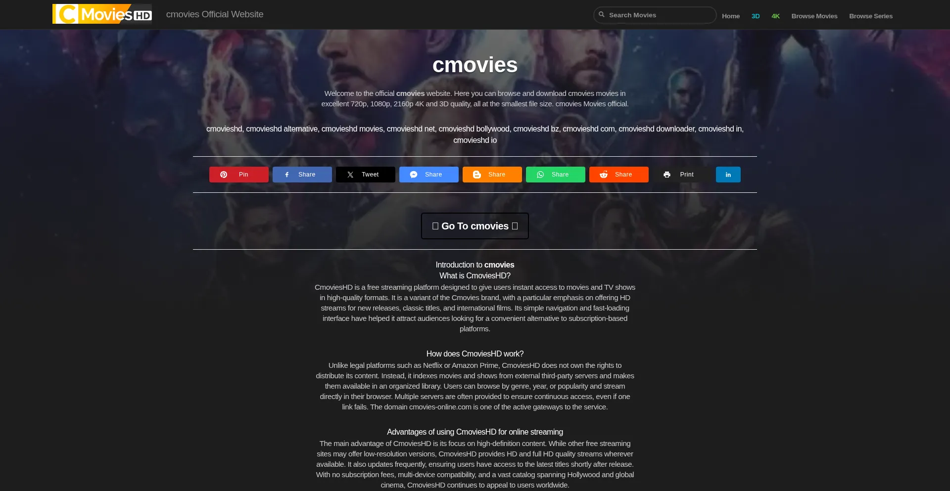CMoviesHD is a free streaming website that provides movies and TV shows in HD quality, featuring a wide range of genres and dubbed content.