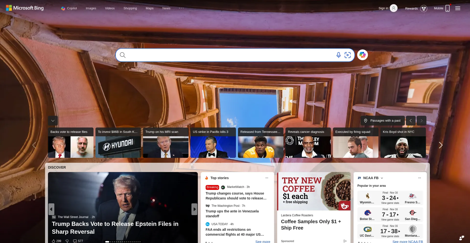 Search with Microsoft Bing and use the power of AI to find information, explore webpages, images, videos, maps, and more. A smart search engine for the forever curious.