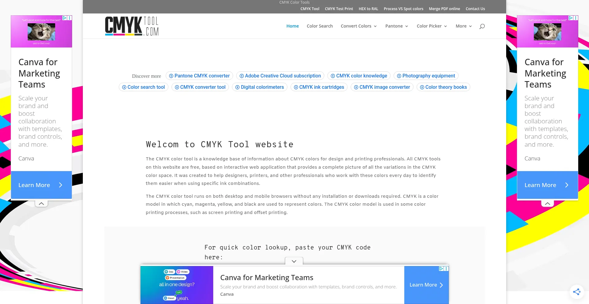 The cmyktool.com website uses Google Tag Manager to add and update tracking tags on its website.