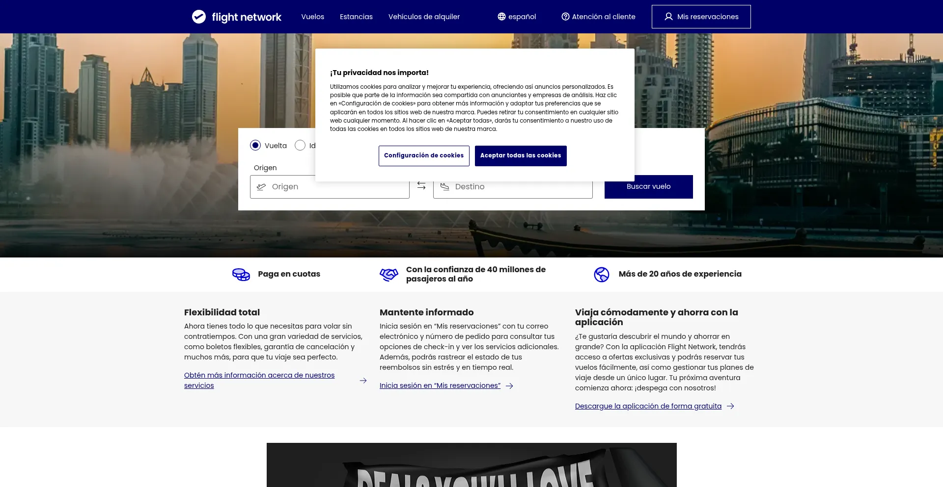 Página de inicio de Flight Network: increíbles vuelos para viajar con comodidad