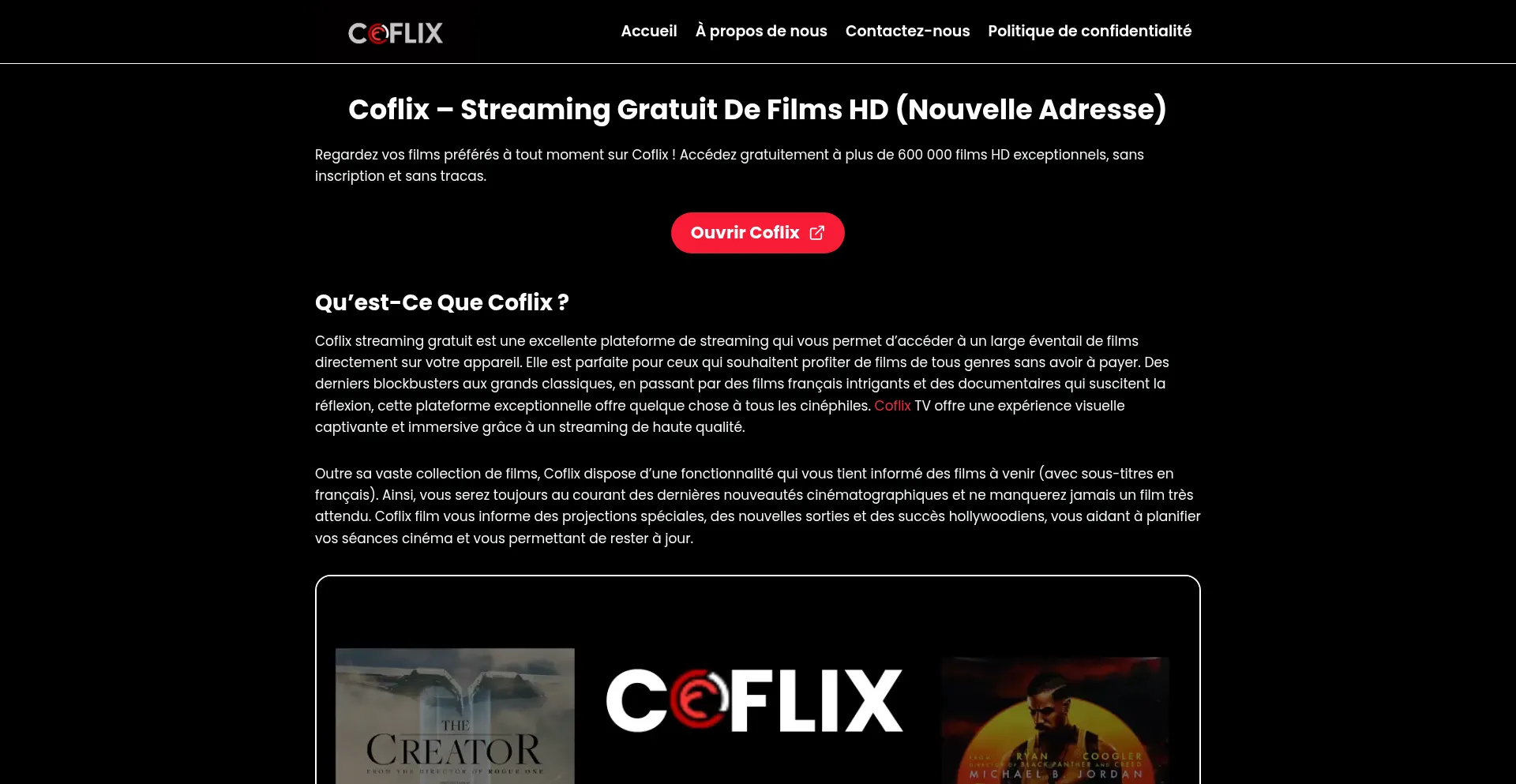 Coflix TV vous offre le streaming gratuit de milliers de films et séries HD. Retrouvez ici la nouvelle adresse du site officiel.