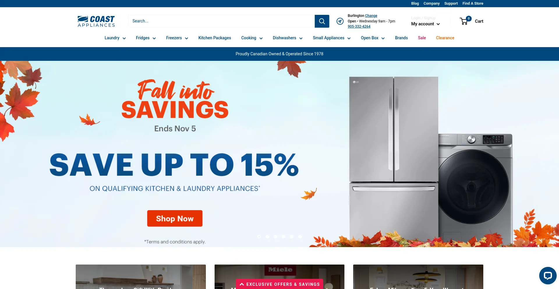Analysis indicates that coastappliances.ca operates as an e-commerce platform facilitating online transactions for goods or services. The website implements shopping cart functionality, payment processing systems, and product catalog features typical of commercial retail operations.
