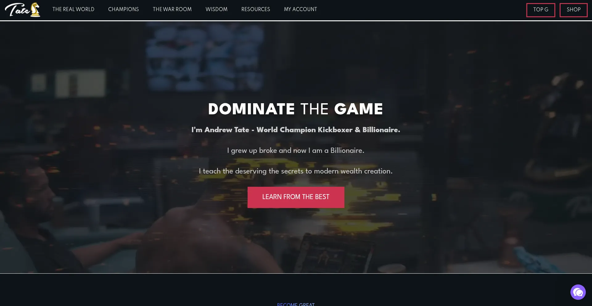 I'm Andrew Tate - World champion kickboxer & Billionaire. I teach the deserving the secrets to modern wealth creation.