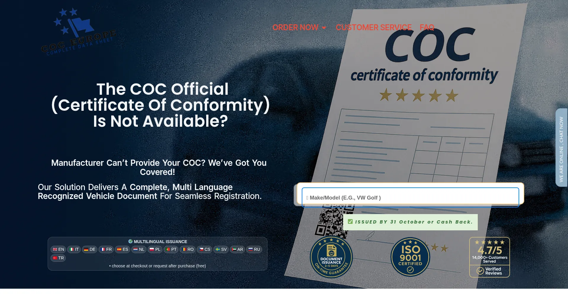 Complete CdS Datasheet for all tipe of Vehicle issue in Just 5 Days: The Perfect and cheapest Alternative to Official COC when this is not available.