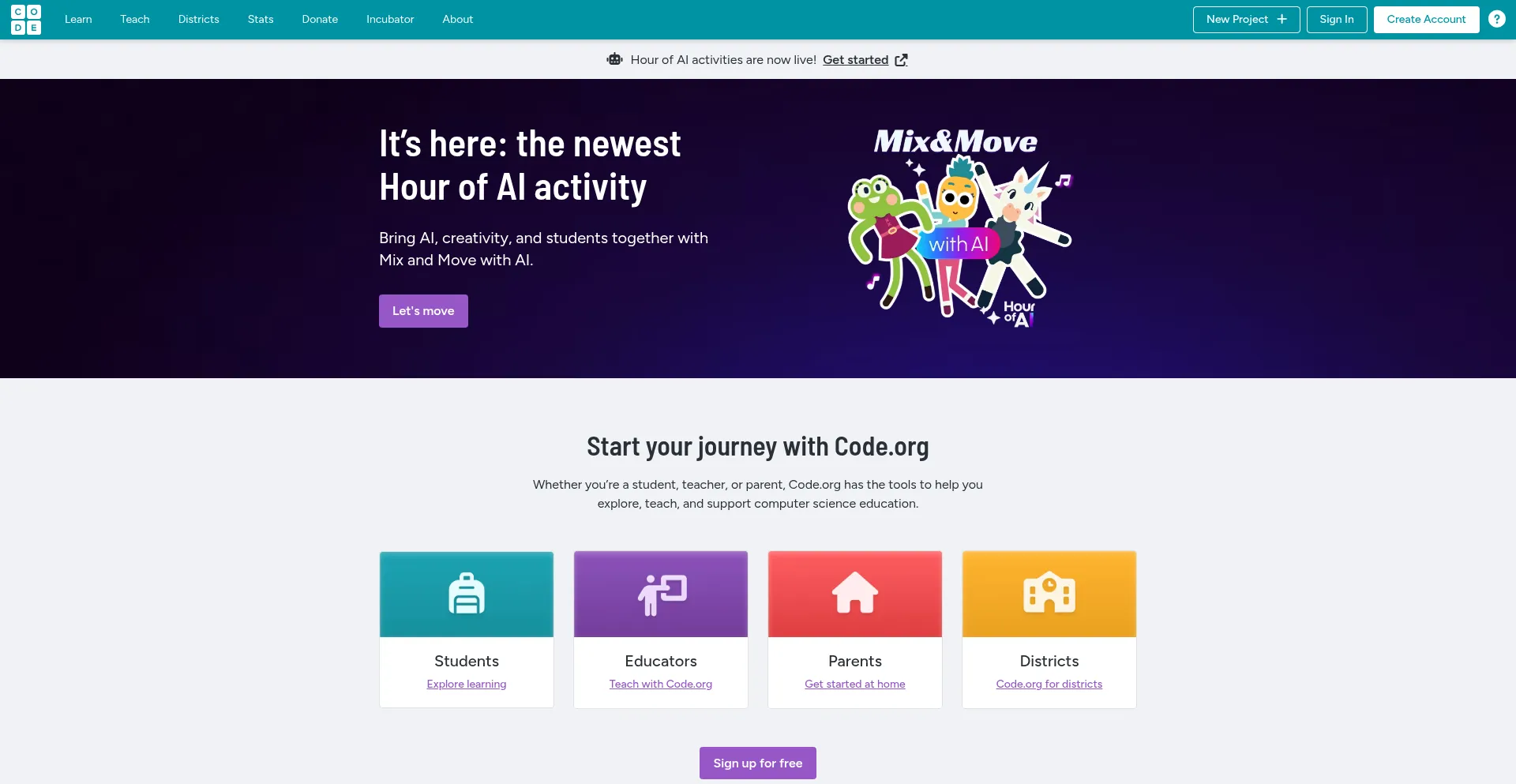 Bring computer science and AI education to your classroom with Code.org’s free K–12 curriculum, hands-on projects, and teacher professional development—no prior experience...