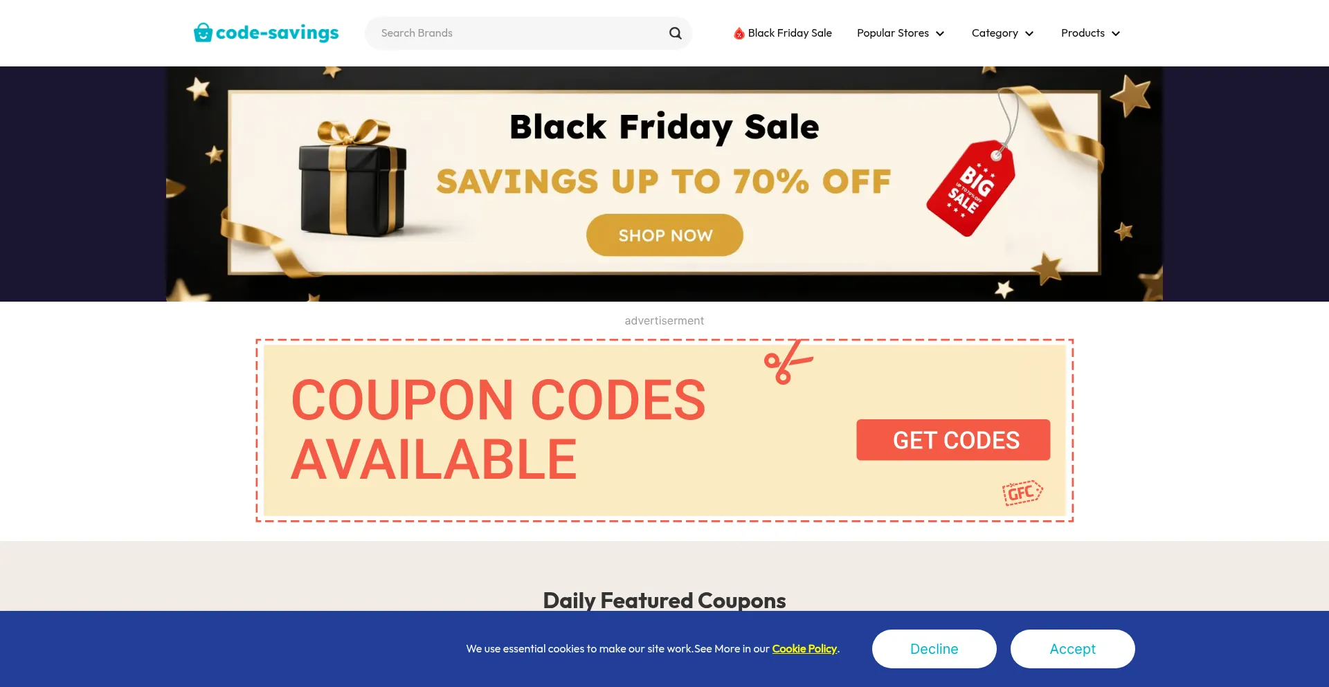 The website implements cookie consent mechanisms in compliance with privacy regulations such as GDPR or CCPA. This demonstrates that code-savings.com adheres to data protection standards and provides users with control over personal data collection practices.