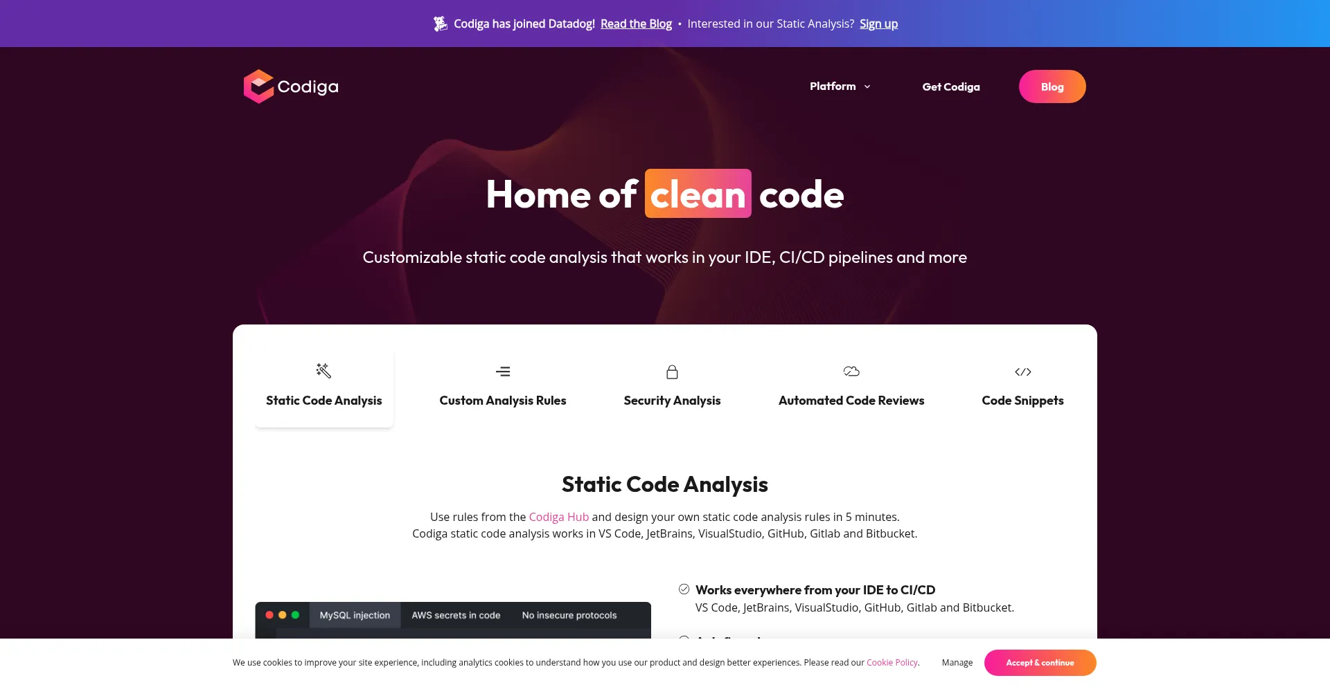 The website implements cookie consent mechanisms in compliance with privacy regulations such as GDPR or CCPA. This demonstrates that codiga.io adheres to data protection standards and provides users with control over personal data collection practices.