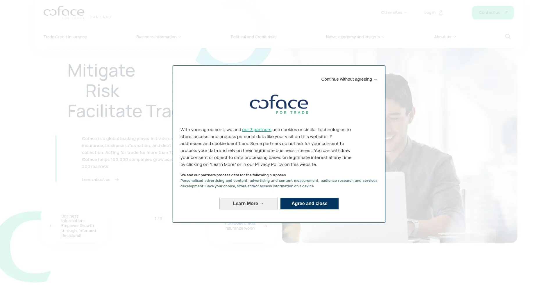 The coface.co.th website implements data collection forms that may request personal information including names, email addresses, phone numbers, or other sensitive details. Users should verify the legitimacy of it and review privacy policies before submitting personal data.
