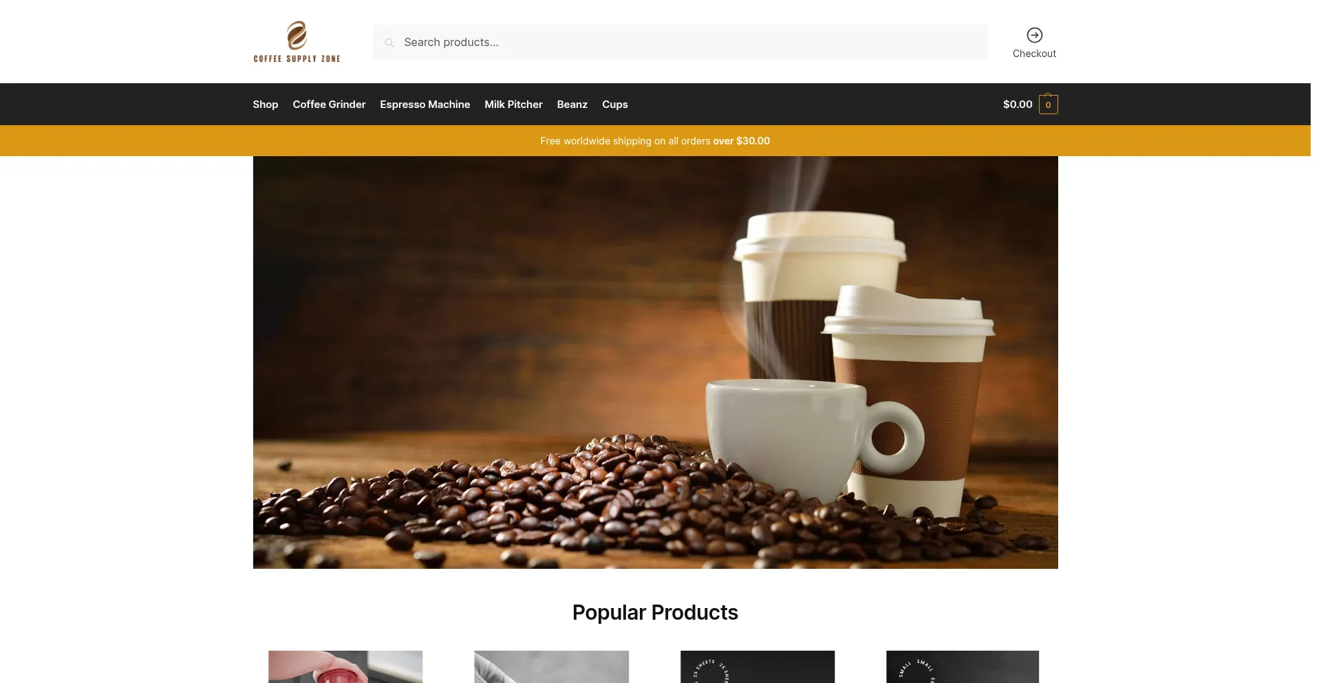 Analysis indicates that coffeesupplyzone.com operates as an e-commerce platform facilitating online transactions for goods or services. The website implements shopping cart functionality, payment processing systems, and product catalog features typical of commercial retail operations.