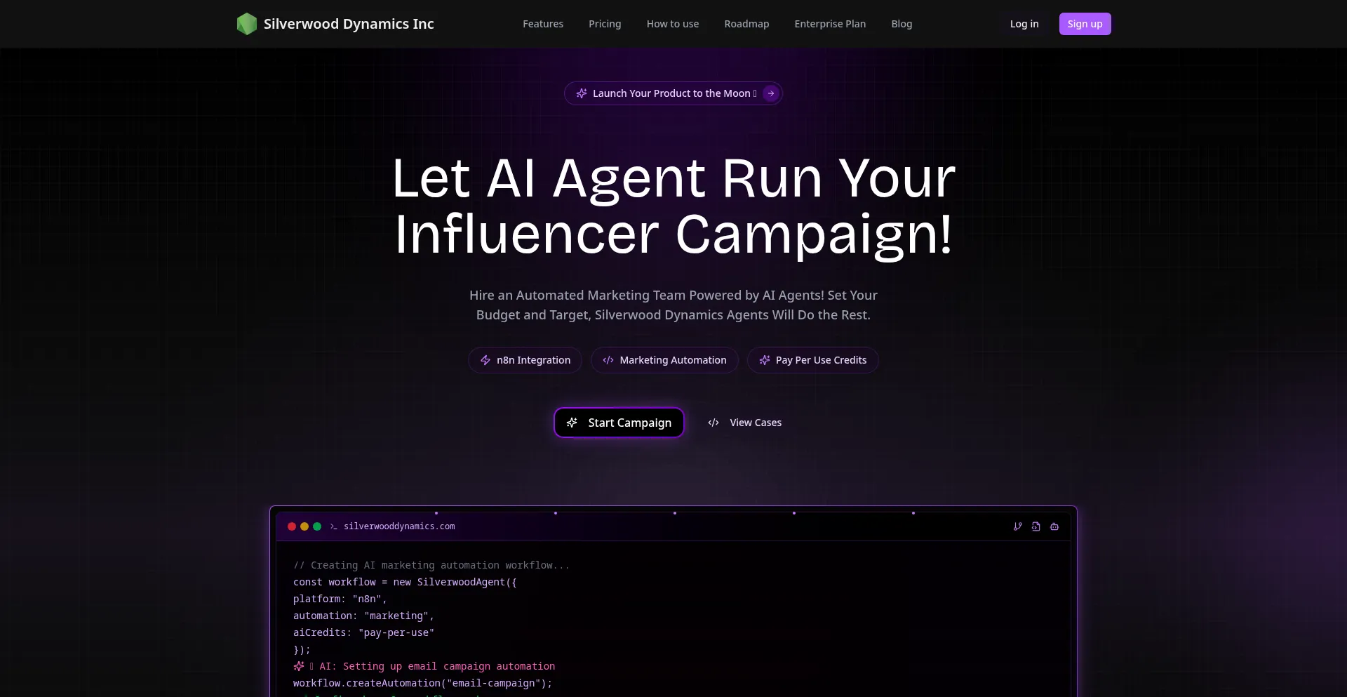 Hire an automated marketing team powered by Silverwood Dynamics AI agents. Launch faster, optimize campaigns intelligently, and scale across 20k+ creators.