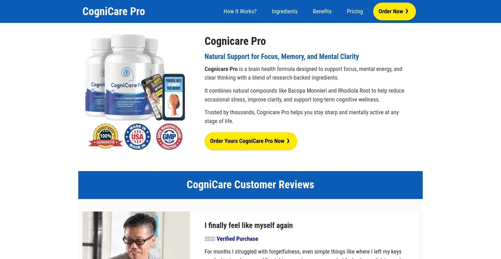 “Cognicare Pro is a natural brain support supplement designed to boost memory, sharpen focus, and improve mental clarity.