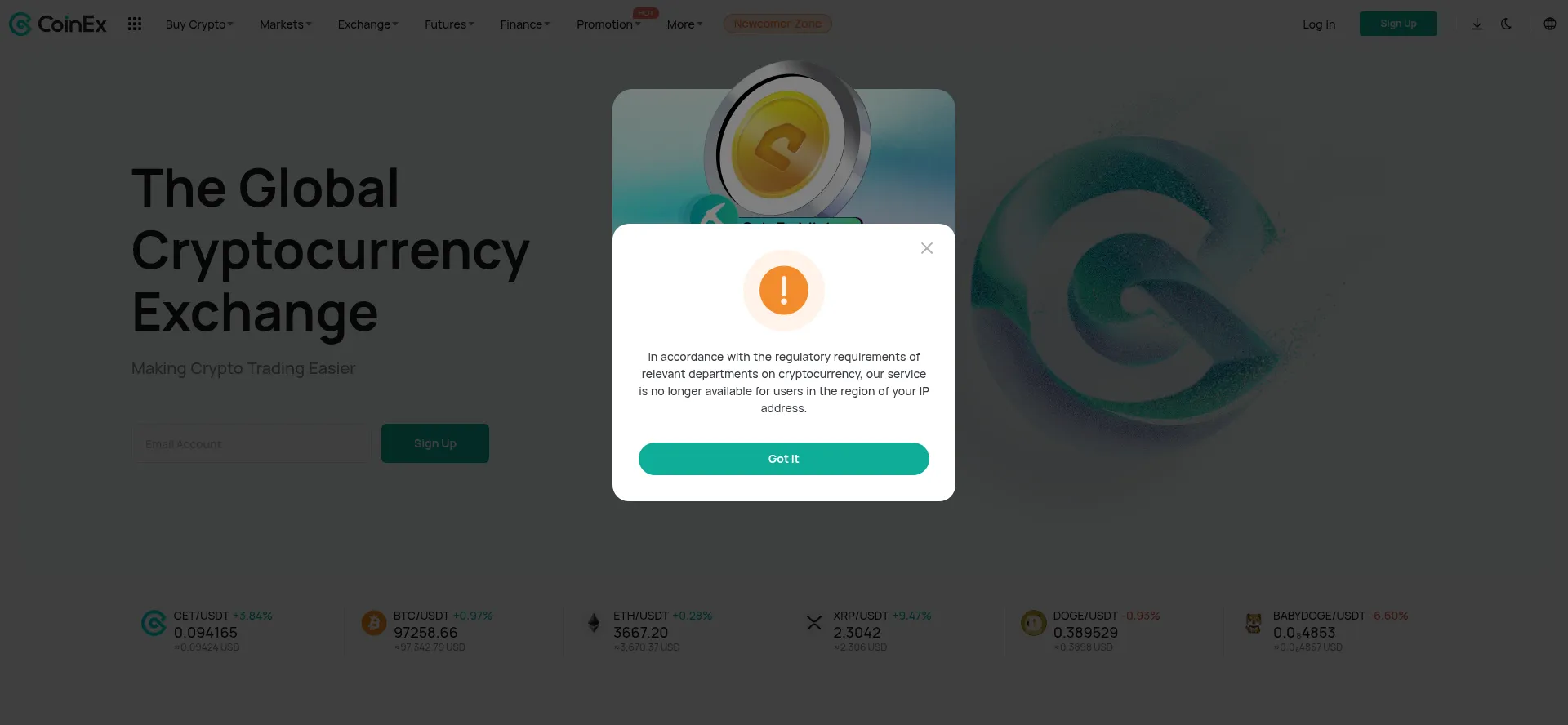 CoinEx - The Global Cryptocurrency Exchange. Supports BTC, ETH, LTC, XRP, DOGE, SHIB and other pairs plus fiat service. 100% reserves. Making crypto trading safer and easier.