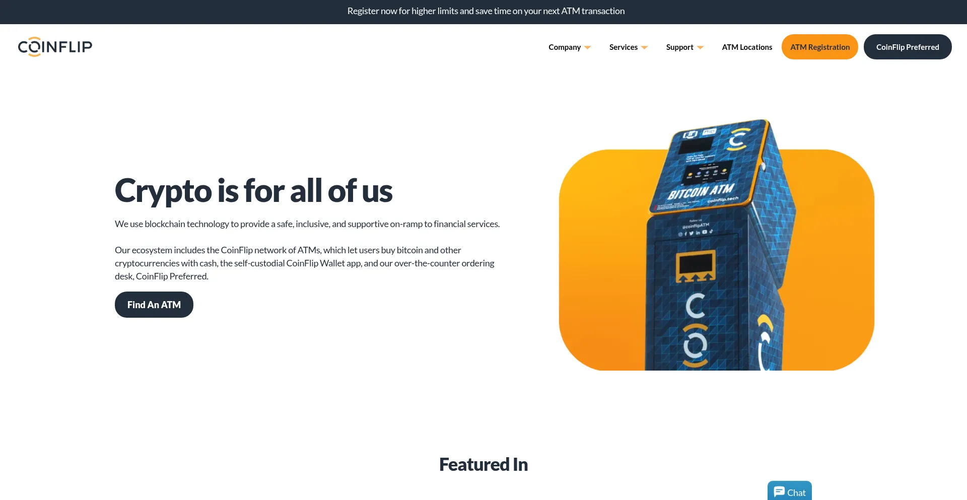 CoinFlip makes buying and selling crypto easy with ATMs and online purchases. Fast, secure, and accessible - find your nearest Bitcoin ATM with our locator.