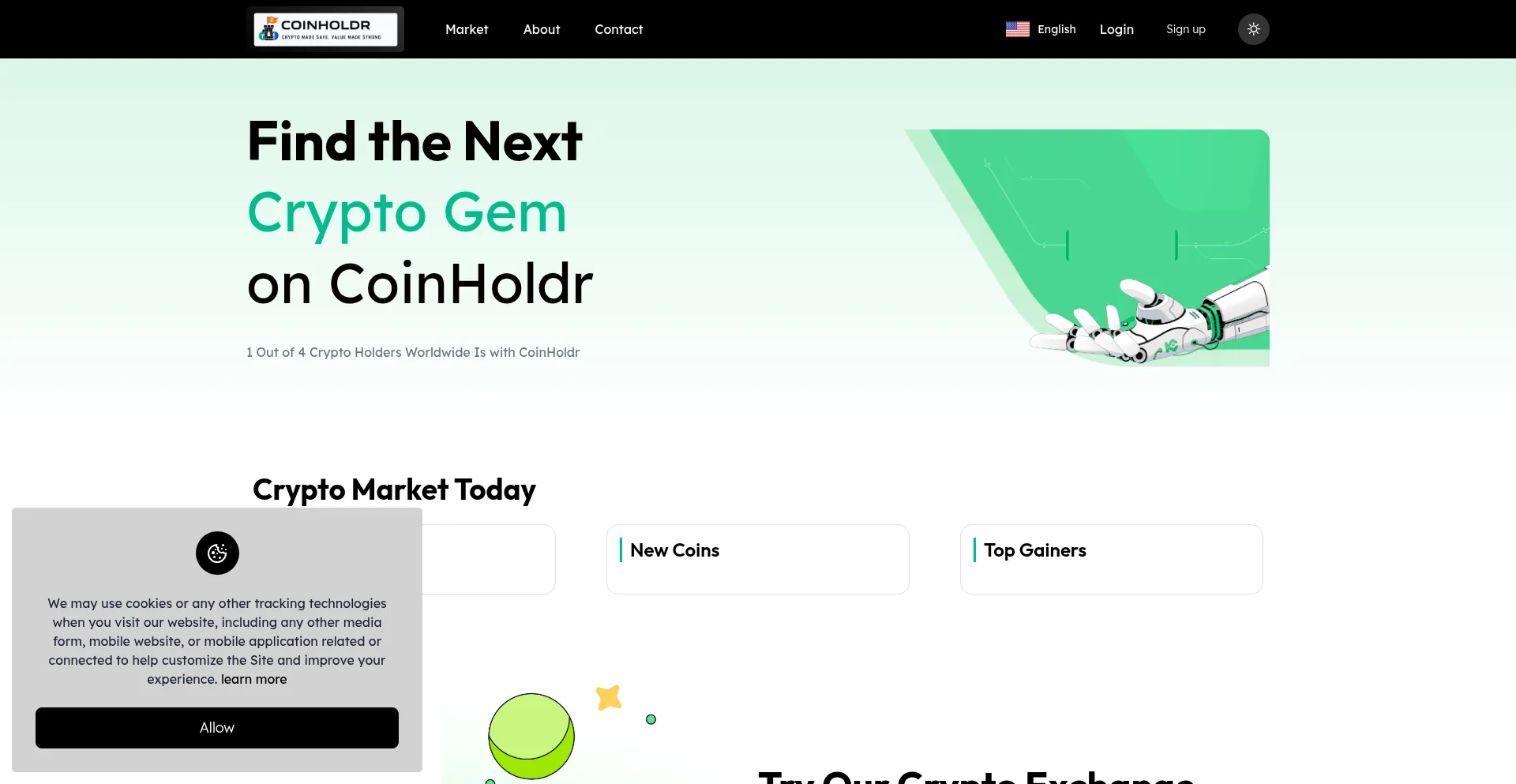coinholdr.com uses Bootstrap, a widely-adopted open-source framework for responsive web development. Bootstrap enables efficient creation of mobile-friendly interfaces through standardized components and styling.