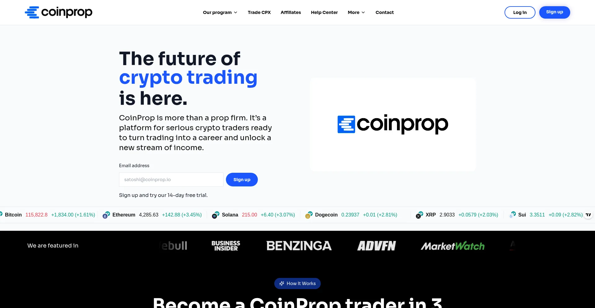 Join CoinProp, the best crypto prop firm with up to 95% profit split, industry-best fees, and a one-step fair evaluation you can pass in 2 days.