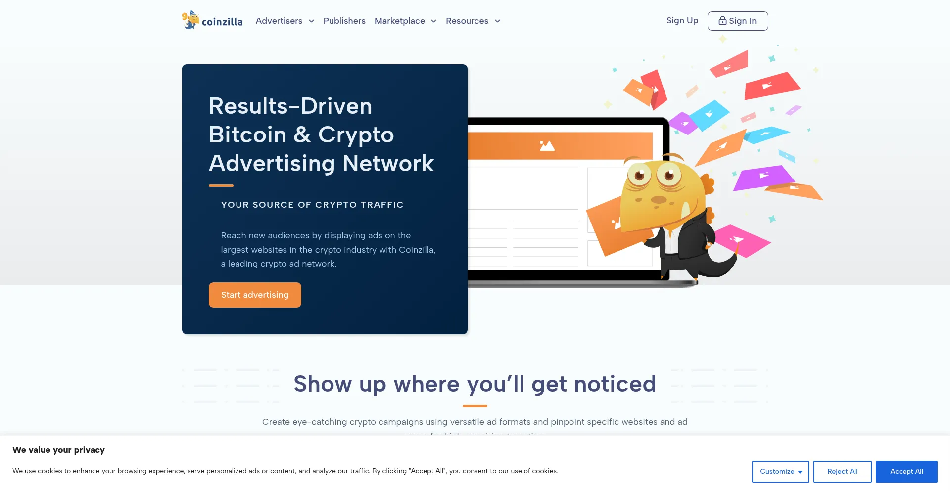 Join the top crypto ad network and drive high-quality traffic to your crypto project’s website. Professional support. Premium publishers. Leading ad tech.