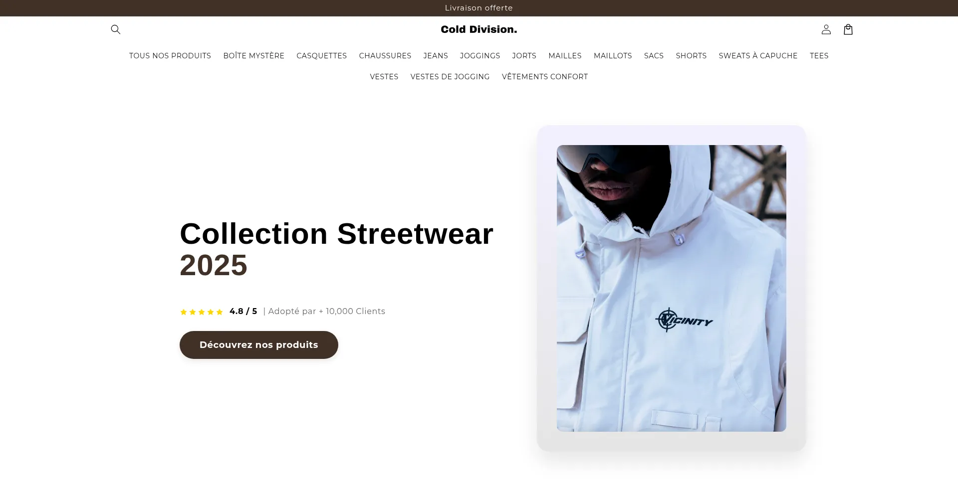 The cold-division.shop website utilizes free e-commerce platform solutions, which may indicate cost-conscious operations but could also suggest limitations in security features, customer support, or advanced functionality compared to enterprise-grade solutions.