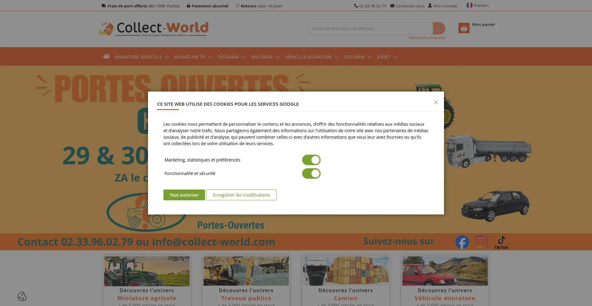 Bienvenue sur Collect World, votre spécialiste des miniatures agricoles et TP de collection. Découvrez + de 15 000 références de miniatures, maquettes, figurines et jouets. ...
