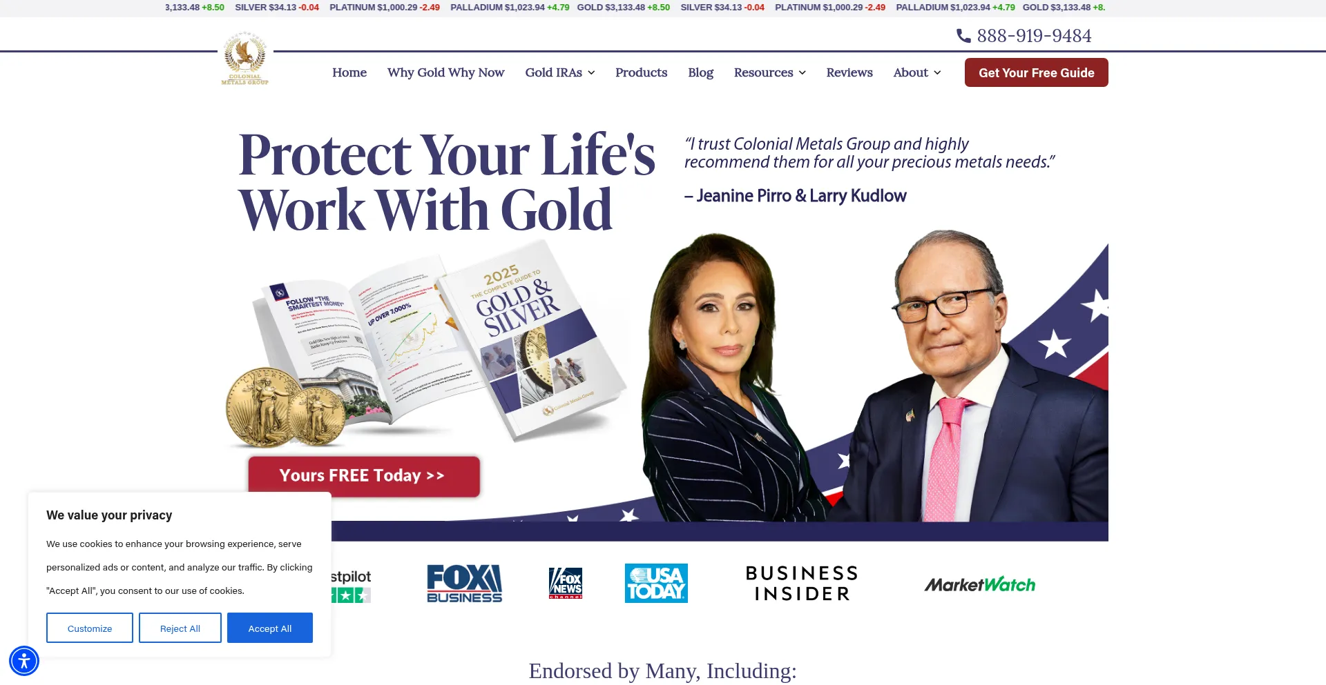 Protect your purchasing power with a Gold & Silver IRA from Colonial Metals Group. A+ Top rated Gold IRA company.
