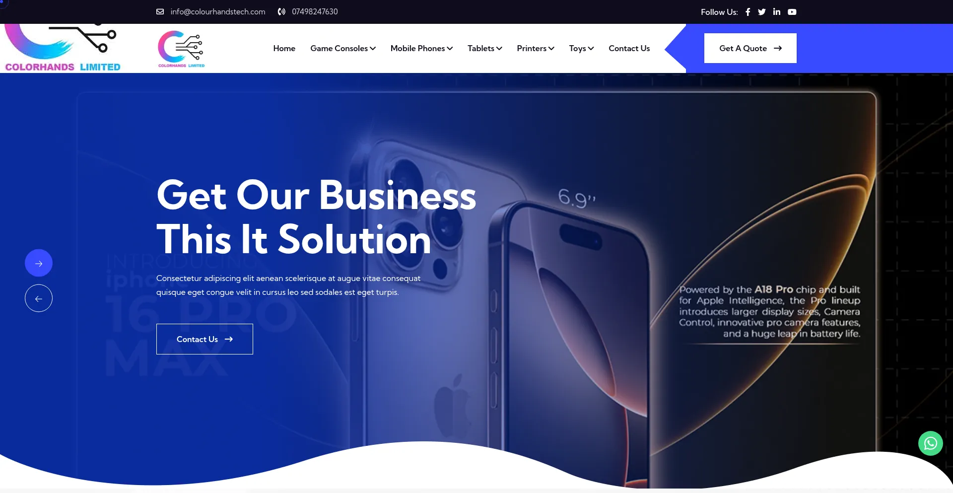 Analysis reveals that colourhandstech.com displays social media icons or links that do not connect to legitimate social media profiles. This deceptive practice is commonly employed to create false legitimacy and represents a significant indicator of fraudulent intent requiring immediate caution.