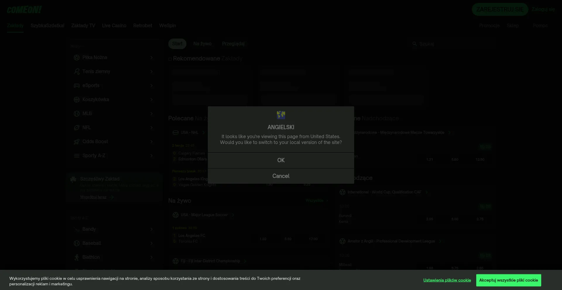 The website implements cookie consent mechanisms in compliance with privacy regulations such as GDPR or CCPA. This demonstrates that comeon.pl adheres to data protection standards and provides users with control over personal data collection practices.