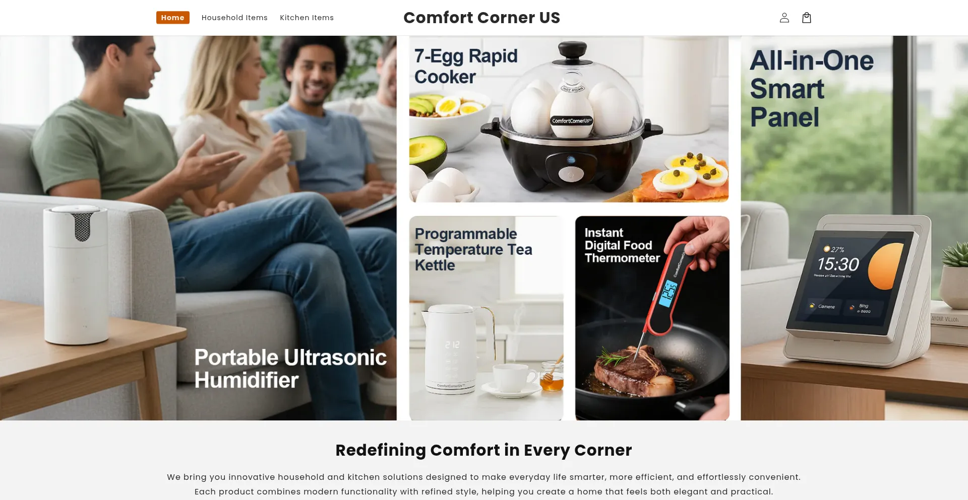 Analysis indicates that comfortcornerus.com operates as an e-commerce platform facilitating online transactions for goods or services. The website implements shopping cart functionality, payment processing systems, and product catalog features typical of commercial retail operations.