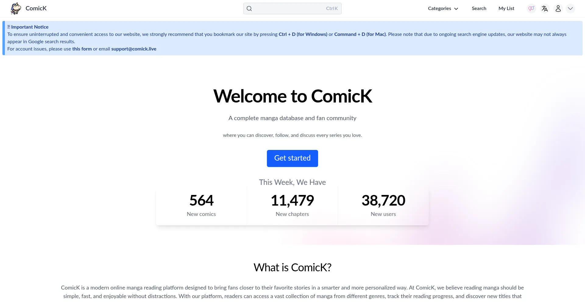 ComicK is a free manga reading platform featuring thousands of manga, manhwa, and manhua series updated regularly. Enjoy a fast and smooth reading experience.