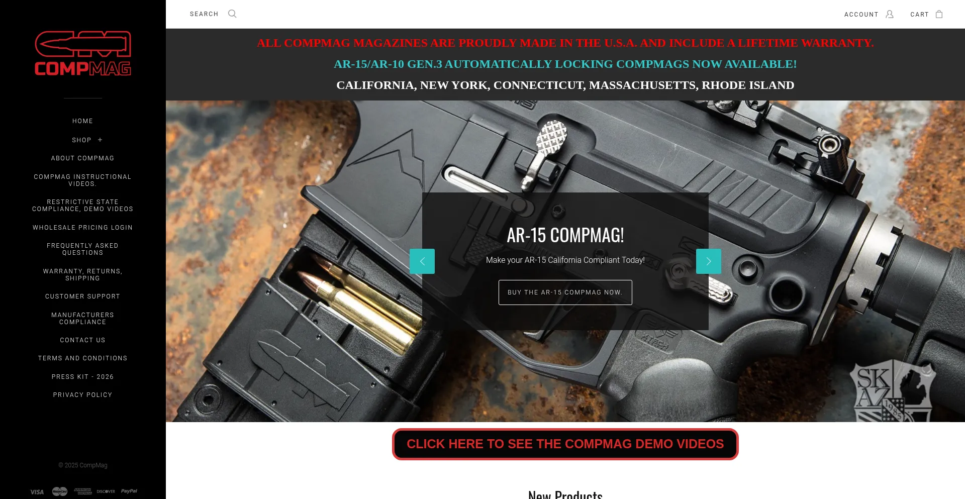 CompMag. California Compliant Fixed, Side Loading Magazines. For AK-47 & AR-15 Firearms. Get California legal just by changing your magazine.Click here to learn more.