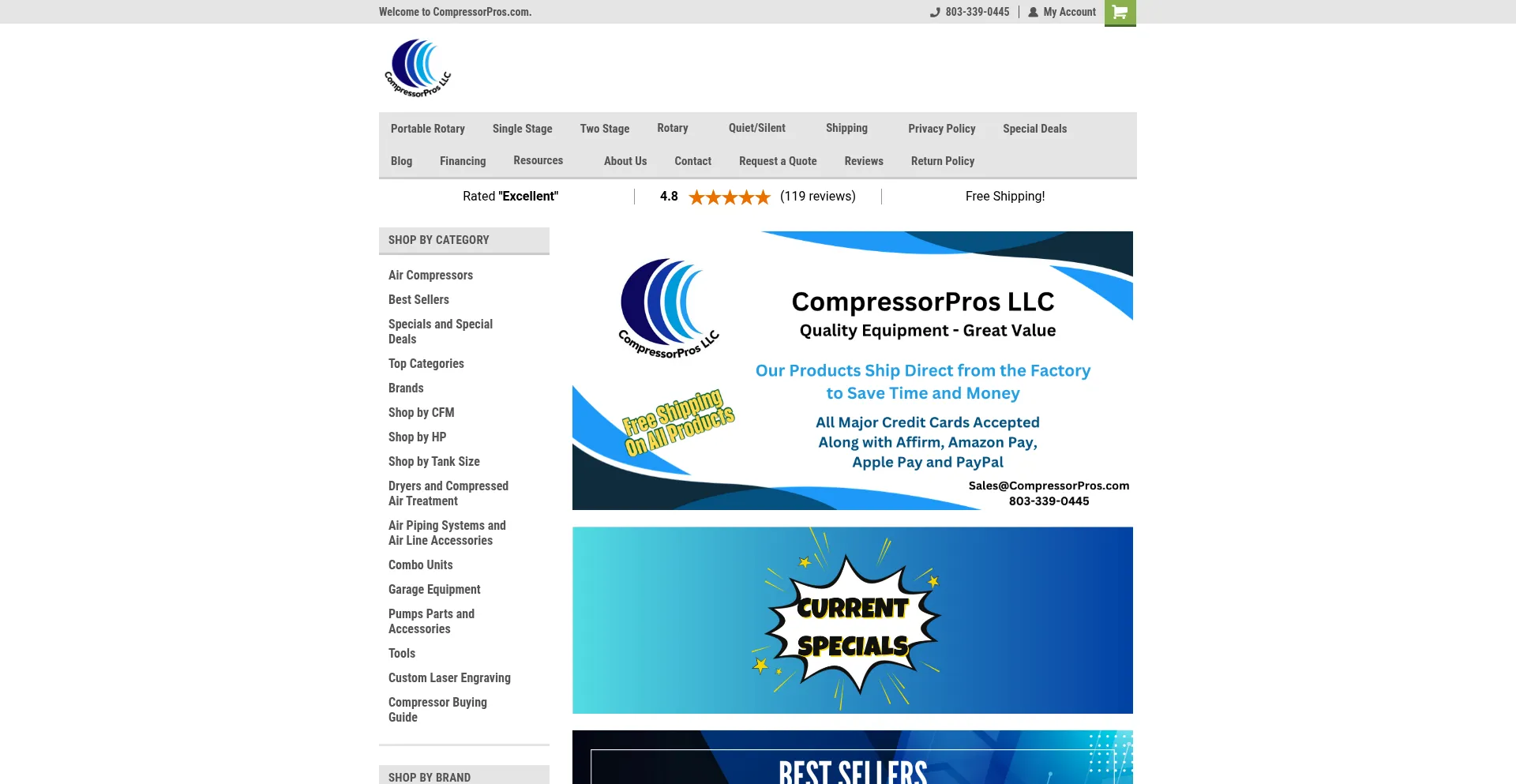 CompressorPros LLC has the best pricing and free standard shipping on all products. Check out our selection of air compressors and more.